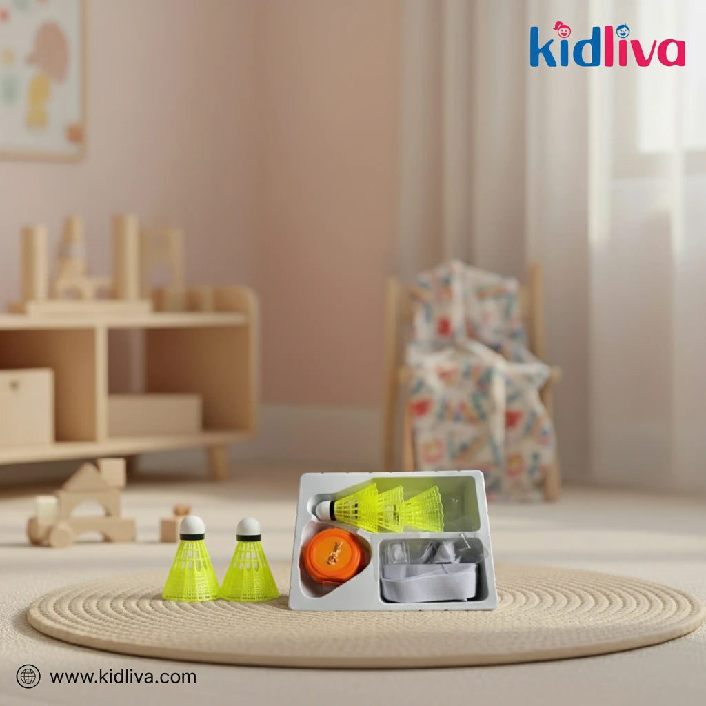 Durable Shuttlecocks: Comes with sturdy shuttlecocks (likely multiple, as shown in motion) built to withstand repeated hits.