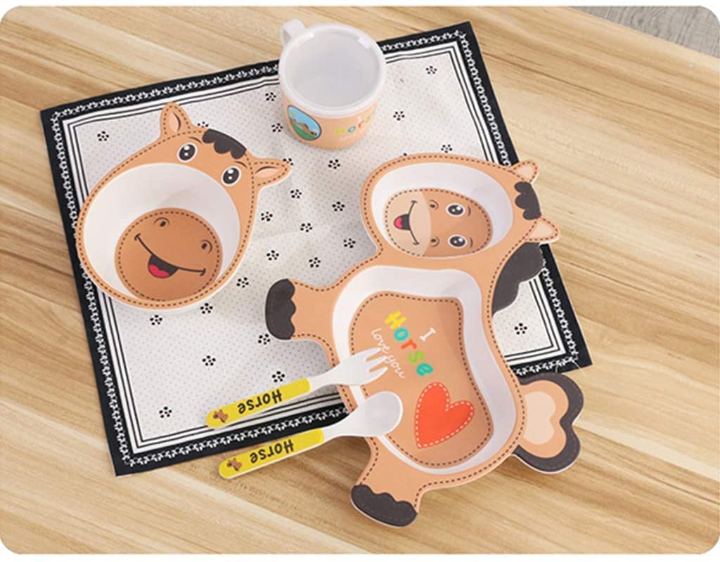 This adorable Horse Kids Meal Set is a charming 5-piece dinnerware collection designed to make mealtime fun and engaging for toddlers. The set features a cute, friendly horse design with warm orange and black accents and includes: