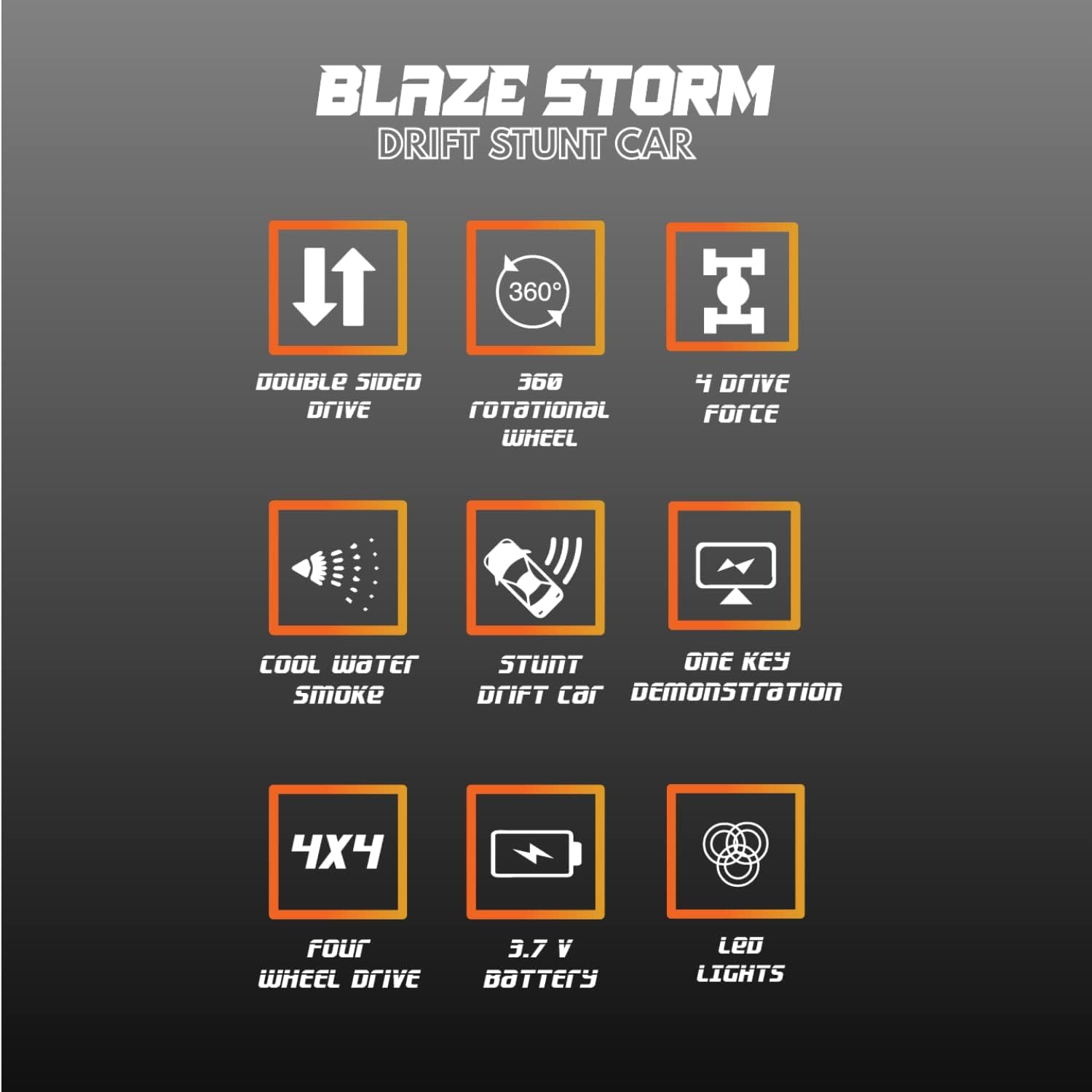 360° Stunt Rotation: Hit a button to make the car spin in place for a dizzying, light-filled spectacle that will captivate spectators.