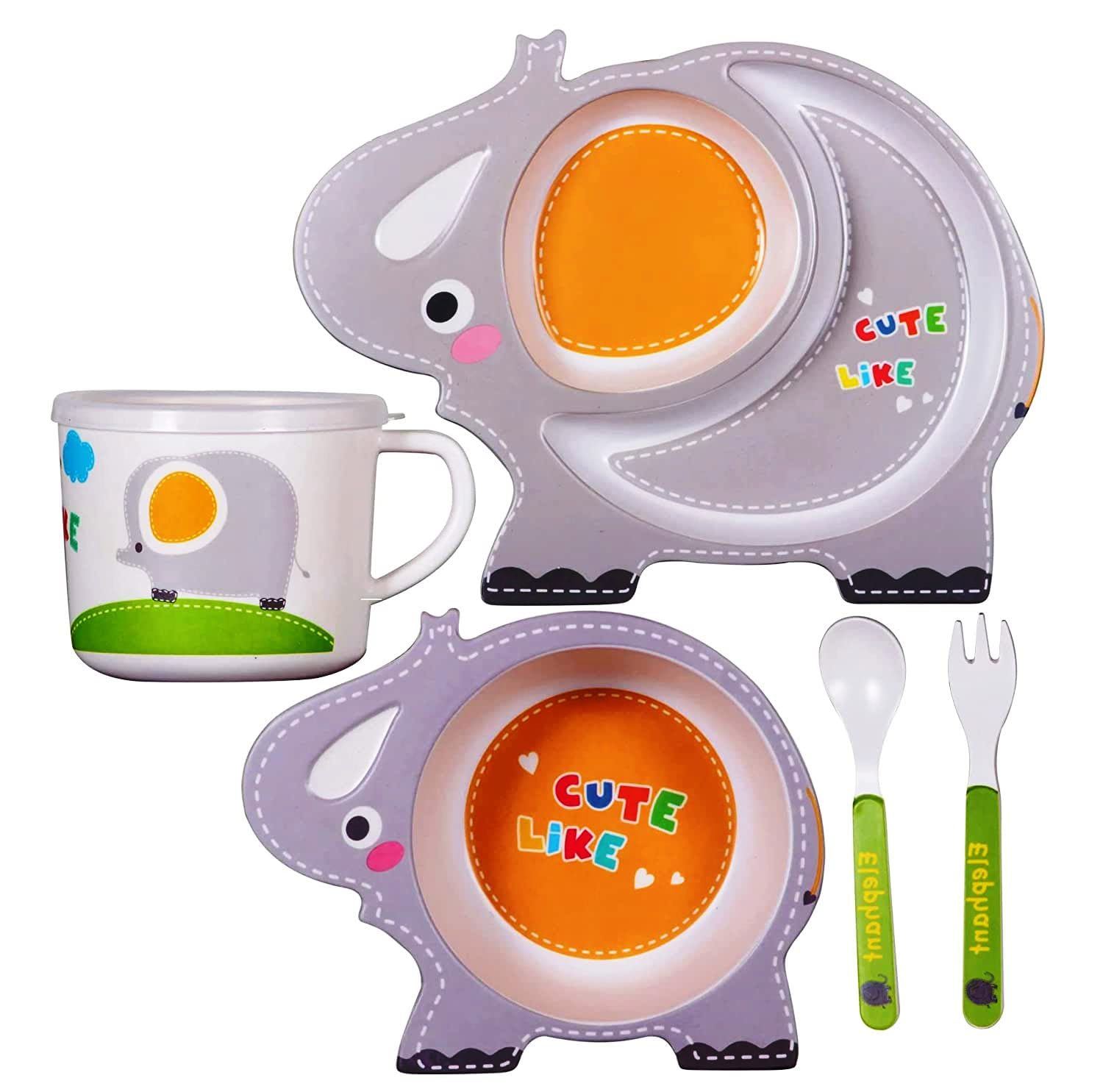 - Key Features: Divided, elephant-shaped plate; Child-sized cutlery.