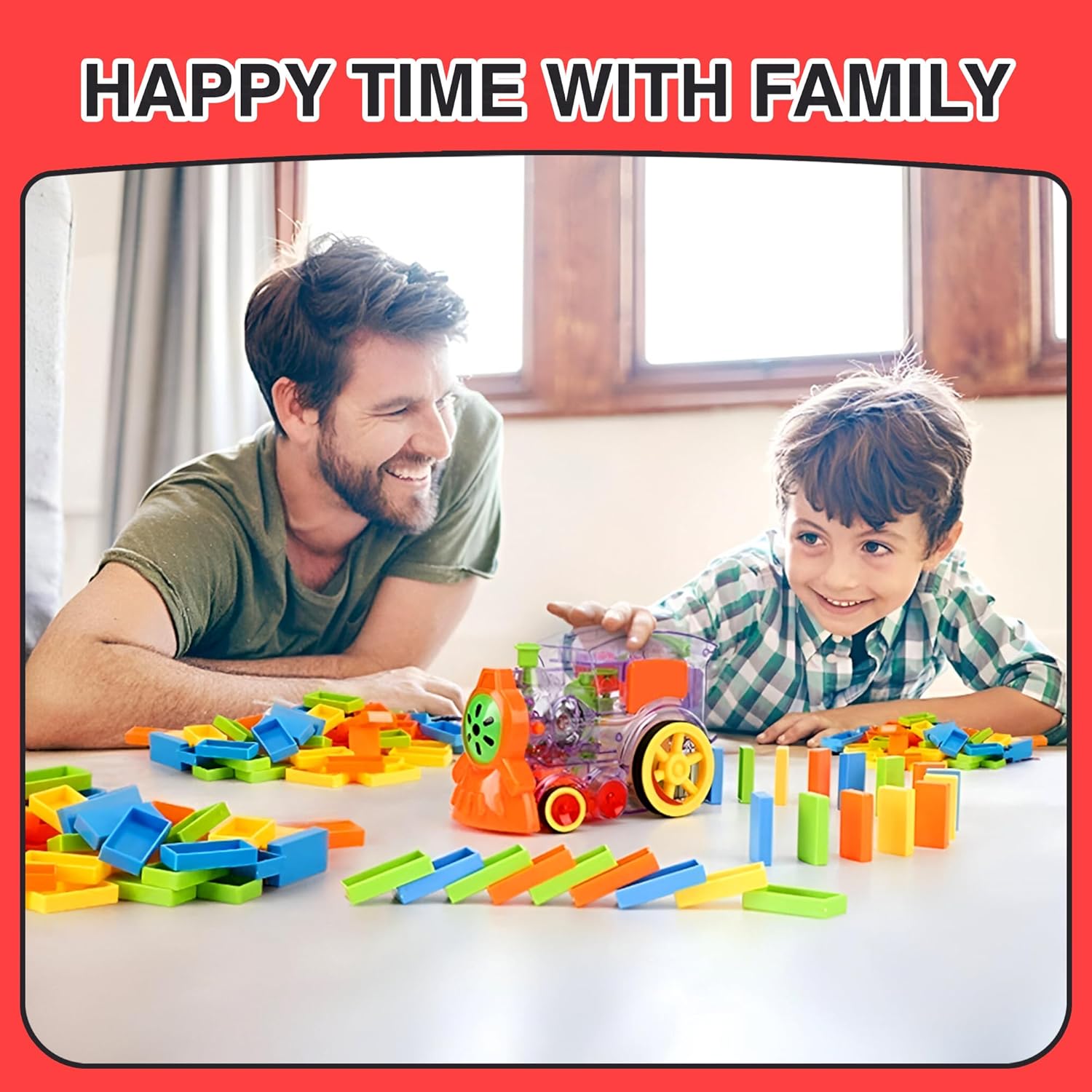 - Automatic Setup: The motorized train automatically lays dominoes, saving time and making setup fun.